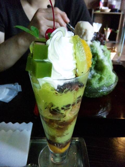 抹茶プリンパフェ(と宇治金時かき氷)