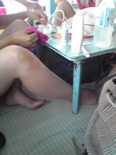 プールで結構焼けた…