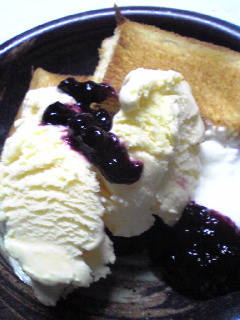 トースト×バニラアイス×ヨーグルト×ブルーベリージャム