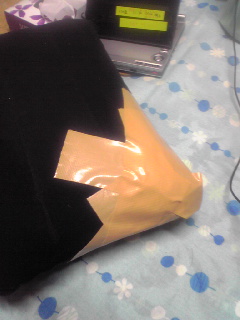 穴をテープで補強